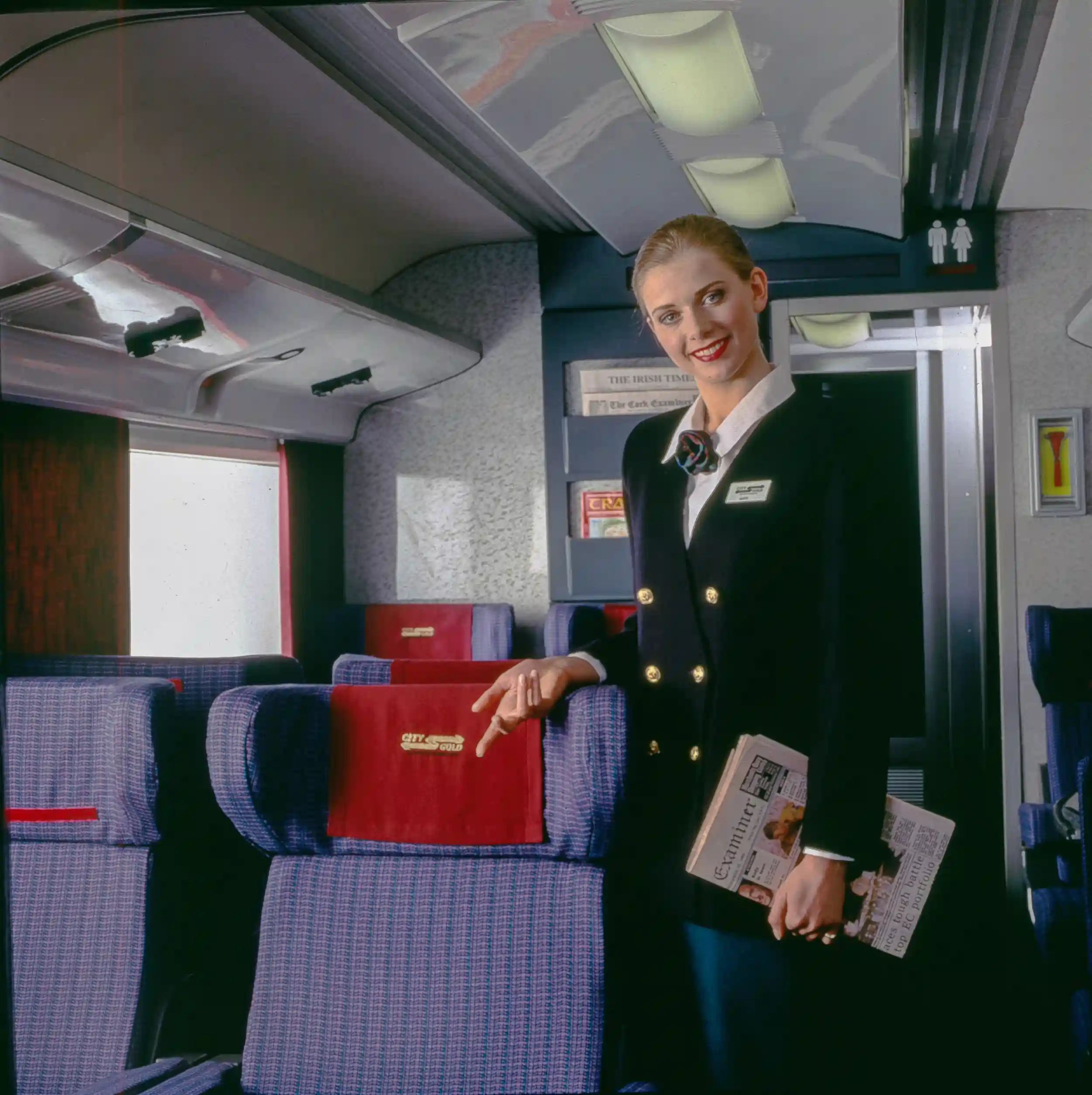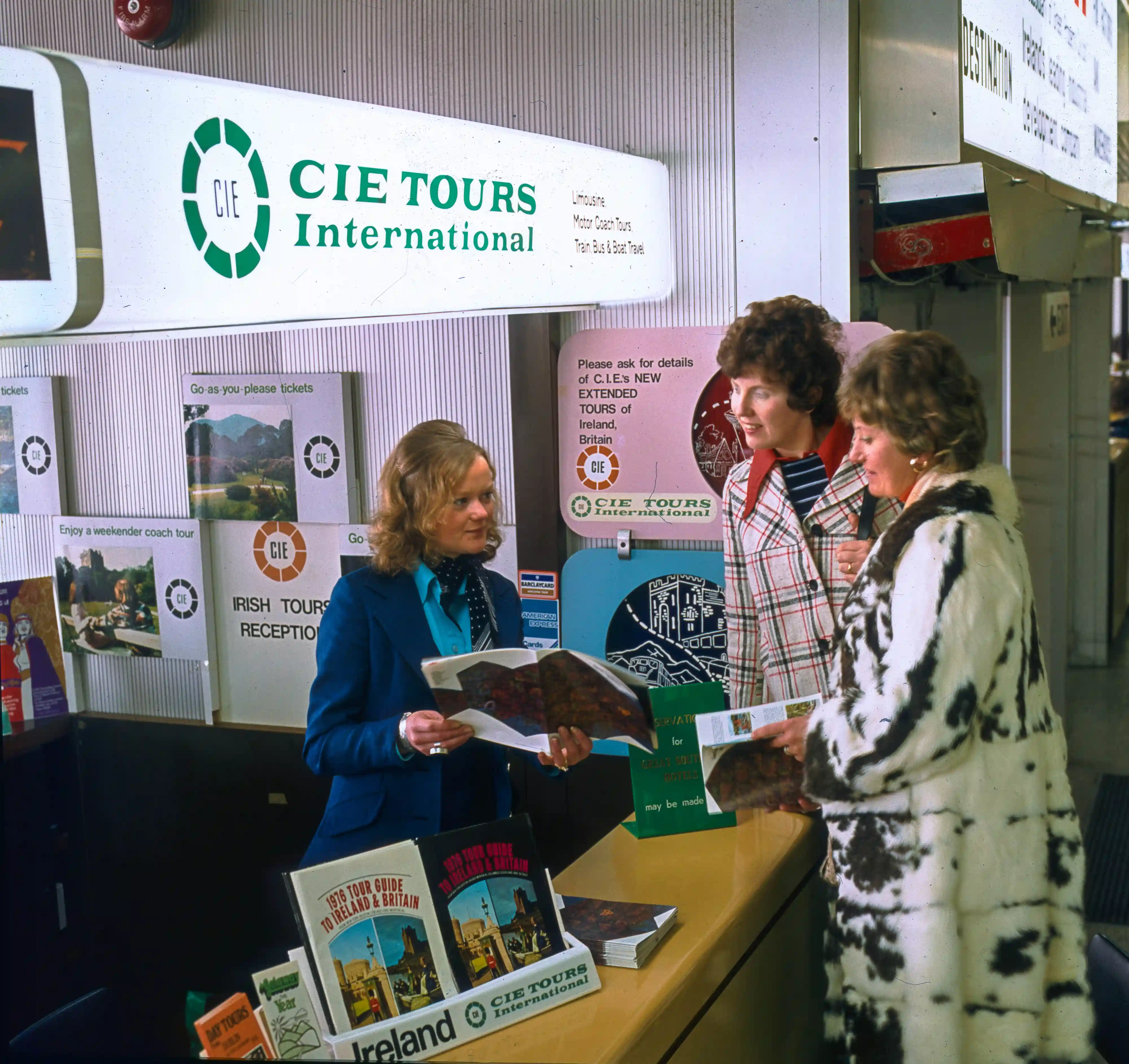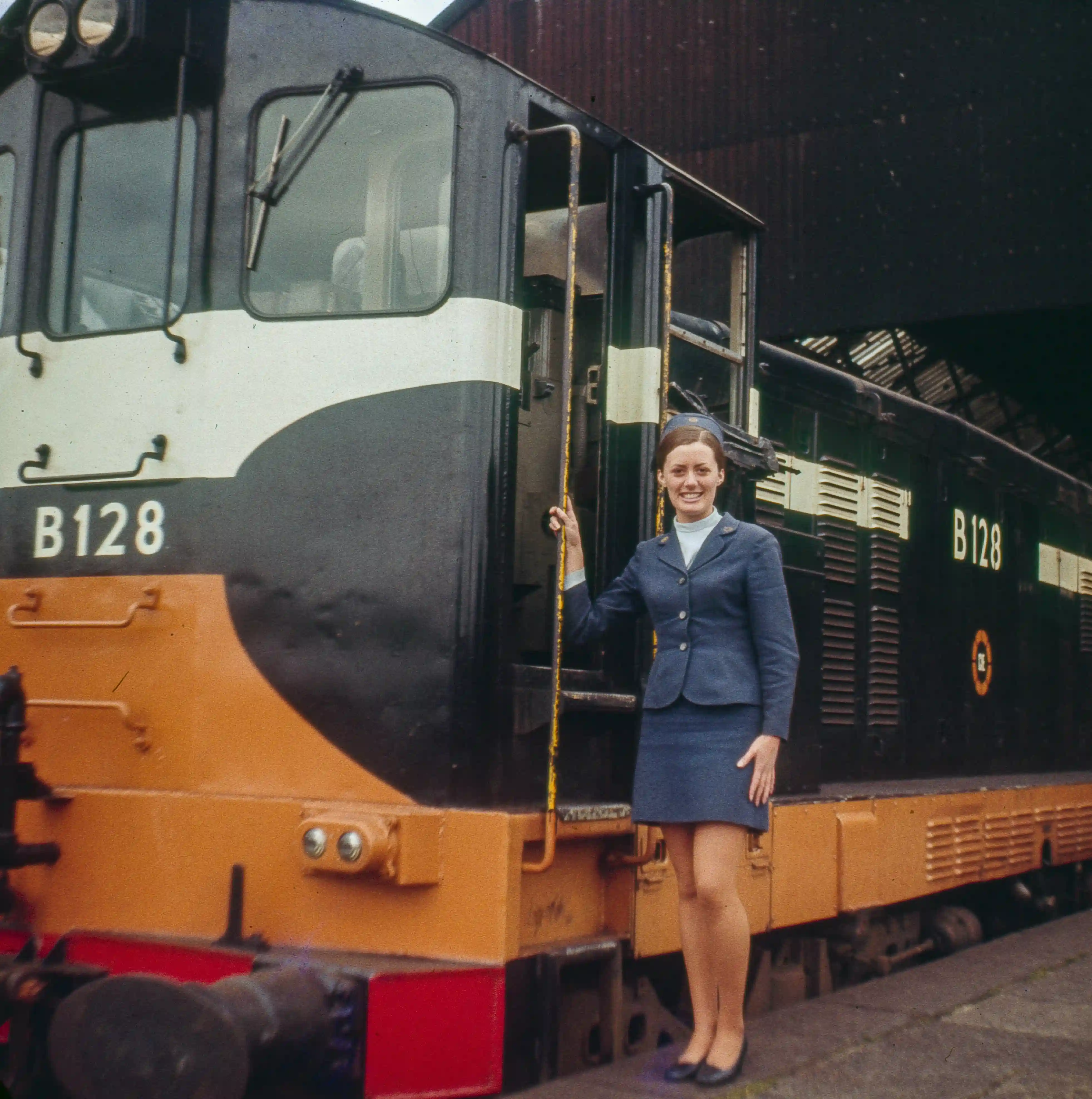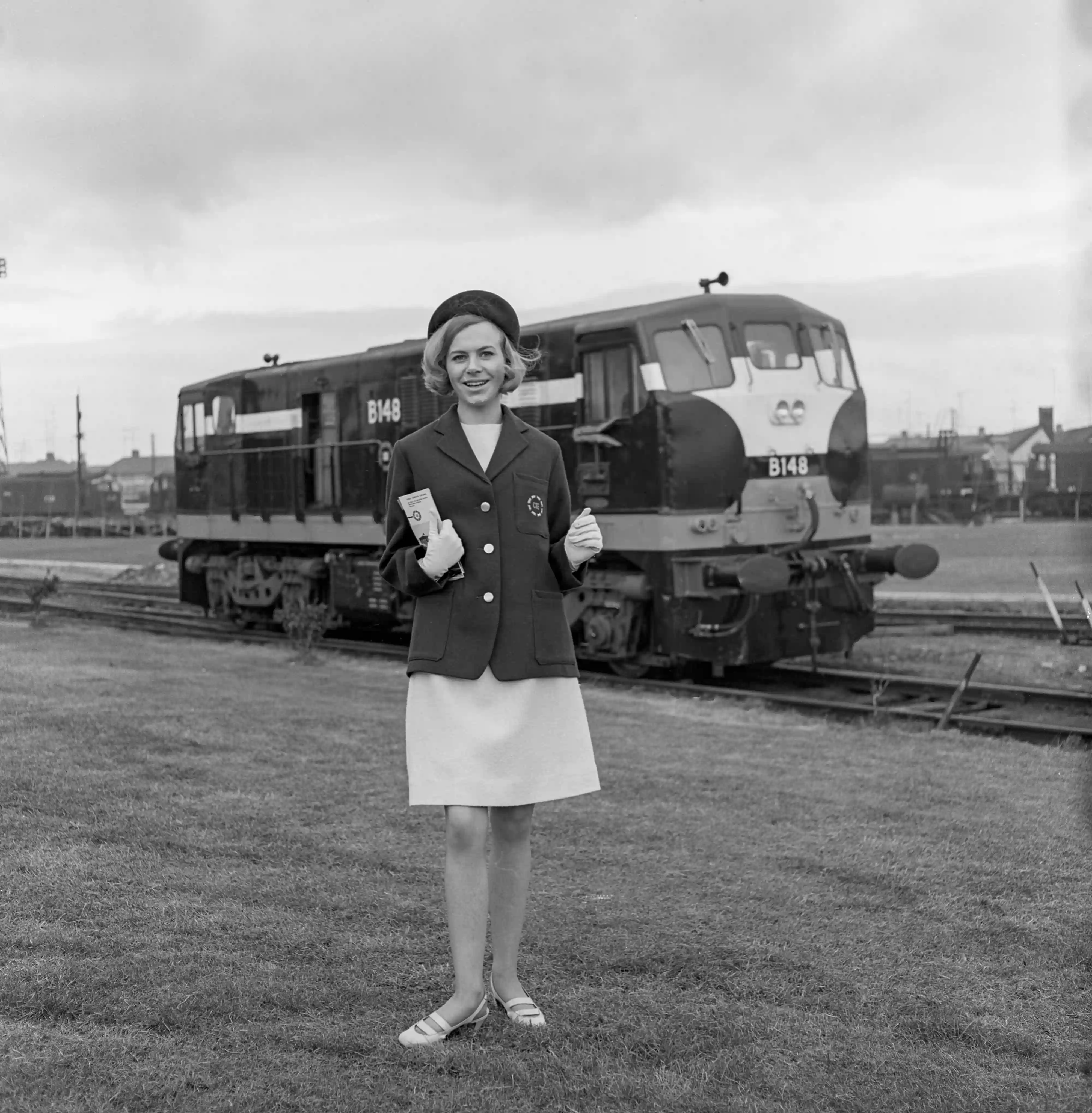 Train 1950s Ballyheady Jun 1958 IrishRailwaySocietyHeuston Station c1800sHeuston Station c1800sTicket Booking Office 1960s SandycoveTicket Booking Office 1960s SandycoveTicket Booking OfficeBlack and white photo of a woman buying a ticket from a male clerk at a station ticket window.CIÉ Bus Phibsborough1970sA transport worker in blue overalls and red gloves refueling a yellow CIÉ bus at a depot.Train CateringA uniformed attendant with a trolley serves snacks and drinks to a smiling couple in a train carriage.CIÉ level crossing gatekeeperBlack and white portrait of an elderly woman with glasses, standing behind a railway level crossing gate.CIÉ Halt keeperA woman in a red dress and a young girl in a plaid skirt stand in the doorway of a small, rustic station hut in Fenagh, Ireland.CIÉ HaltkeeperTwo women posing for a photo in front of the Dunsandle station sign in Ireland.CIÉ Inchicore Tour GuideBlack and white photograph of a female staff member in uniform, smiling and posing in front of a CIÉ diesel train.CIÉ Train HostessA smiling CIÉ train hostess in a blue uniform, posing in the doorway of a B128 diesel locomotive.CIÉ Supertrain HostessA female train attendant in a red uniform talks to a man and woman seated at a table in a train carriage.CIÉ Supertrain HostessA train hostess in a red uniform talks with a group of young passengers seated around a table in a train carriage.CIÉ Tours RepA CIÉ Tours International agent helps two female customers with a brochure at a reception desk.CIÉ Tours repA group of tourists gather at the INTRAV Hospitality Desk in a hotel lobby to speak with travel agents.Iarnród Éireann train hostessA female train attendant in a smart navy uniform, smiling and posing inside a modern train carriage.CIÉ Train Driver and station staffA black and white portrait of two male train drivers in uniform, standing on a station platform next to their locomotive.CIÉ Driver FiremanBlack and white photo of the 'Radio Train' steam locomotive, with two drivers posing on the engine's running board.CIÉ Driver FiremanBlack and white portrait of a smiling train driver and his fireman posing on their steam locomotive.Locomotive firemanA railway worker in overalls stands proudly on a steam engine, with a large pile of coal in the foreground and a passenger train at the platform behind him.Station in New Ross July 1956Black and white photo of farmers loading cattle onto a special livestock wagon on a freight train at a rural station.Kingsbridge Station 1961A circus handler guides a line of elephants into a CIÉ railway carriage at a station.Signaling Office 1956Signaling Office 1956Cherryville Signal CabinCherryville Signal CabinCentral Signaling office Connolly StationCentral Signaling office Connolly StationRepairs to a CIÉ goods vanRepairs to a CIÉ goods vanFrame assembly of a new railway pallet vanFrame assembly of a new railway pallet vanWelding 1970Welding 1970Work on Straffan railway tracksBlack and white photo of railway workers using a large crane to lay new sections of track.Work on Limerick trackA crew of railway workers in caps and jackets pose for a photo while working on a section of track.Work in BooterstownA large group of workers and supervisors oversee the lowering of a concrete culvert into a trench by a crane.Work in HeustonA crew of railway workers laying a new section of track in a busy freight yard.Paint Shop Crew InchicorePaint Shop Crew InchicoreWork on Dun Laoghaire for the DART schemeWork on Dun Laoghaire for the DART schemeNew tack ballast machine at InchicoreNew tack ballast machine at InchicoreSignalman in Howth signal cabinSignalman in Howth signal cabinCIÉ Canal BargeCIÉ Canal Barge'Naomh Éanna' CIÉ ship'Naomh Éanna' CIÉ shipCork-Tralee Express TrainCork-Tralee Express TrainSteam train at BallyheadySteam train at Ballyheady1953 New CIÉ diesel-railcar train1953 New CIÉ diesel-railcar train1955 New CIÉ Metrovick diesel locomotive1955 New CIÉ Metrovick diesel locomotive1962 New CIÉ General- Motors1962 New CIÉ General- Motors1960 Diesel-railcar at Shragh1960 Diesel-railcar at Shragh1972 CIÉ 'Supertrain'1972 CIÉ 'Supertrain'1973 CIÉ 'Supertrain'1973 CIÉ 'Supertrain'1972 New CIÉ 'Supertrain' Pearse Station1972 New CIÉ 'Supertrain' Pearse Station1989 New Iarnród Éireann train1989 New Iarnród Éireann train1983 first DART Train1983 first DART Train1984 New CIÉ Intercity Mk111 train1984 New CIÉ Intercity Mk111 train1994 Iarnród Éireann 'Arrow' railcar1994 Iarnród Éireann 'Arrow' railcar1995 Iarnród Éireann Newry1995 Iarnród Éireann Newry1959 CIÉ provincial bus1959 CIÉ provincial bus1960 CIÉ City-bus R3401960 CIÉ City-bus R3401960 CIÉ Broadstone bus depot1960 CIÉ Broadstone bus depot1961 CIÉ Busáras1961 CIÉ Busáras1960 Buses at Galway Station1960 Buses at Galway Station1941 CIÉ School and provinicial buses1941 CIÉ School and provinicial buses1971 CIÉ Waterford City buses1971 CIÉ Waterford City buses1982 Broadstone1982 Broadstone1980 CIÉ Bus Parliament Street1980 CIÉ Bus Parliament Street1980 CIÉ Road Freight Service vehicles1980 CIÉ Road Freight Service vehiclesImage of Heuston Station c1800sImage of Heuston Station c1800sCIÉ Tours advertCIÉ Tours advertCIÉ Transport advertCIÉ Transport advertCIÉ Tours Radio Train day tripsCIÉ Tours Radio Train day trips